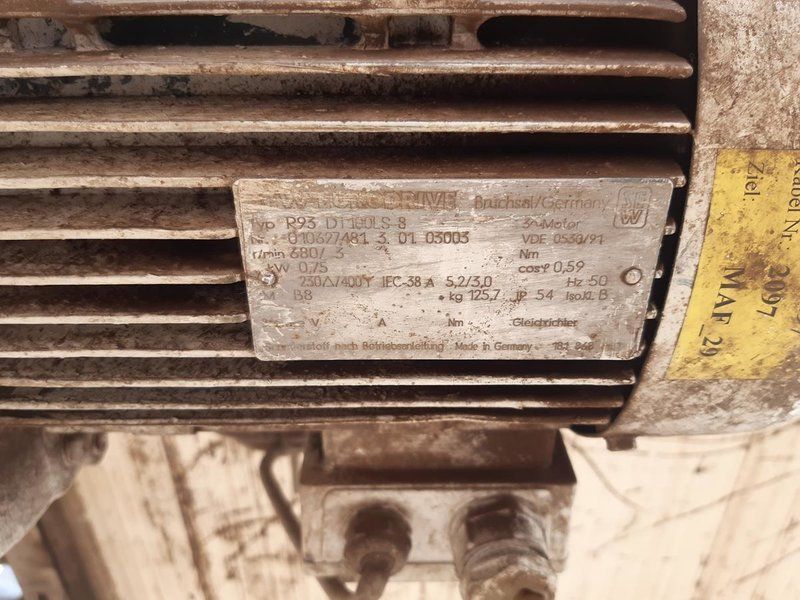 Drive: 2x SEW R93 D1100LS-8, 0,75kW, 3 rpm