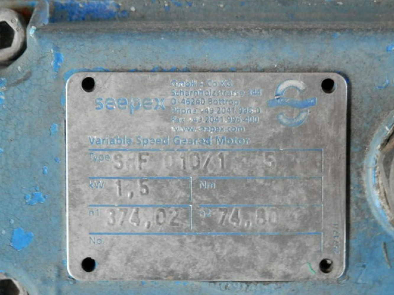 Dişli motor: Seepex, değişken dişli motor